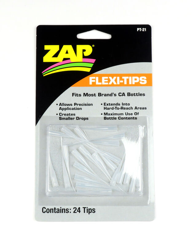 Precision applicator tips that snap onto standard Zap CA glue bottles—extending reach (~1¾″ total length) for pinpoint glue placement in tight fly-tying areas. Ideal for finishing small heads and hard-to-reach spots, they minimize mess and waste. Reusable and replaceable (pack of 24) so you can easily clip back a clogged tip.
