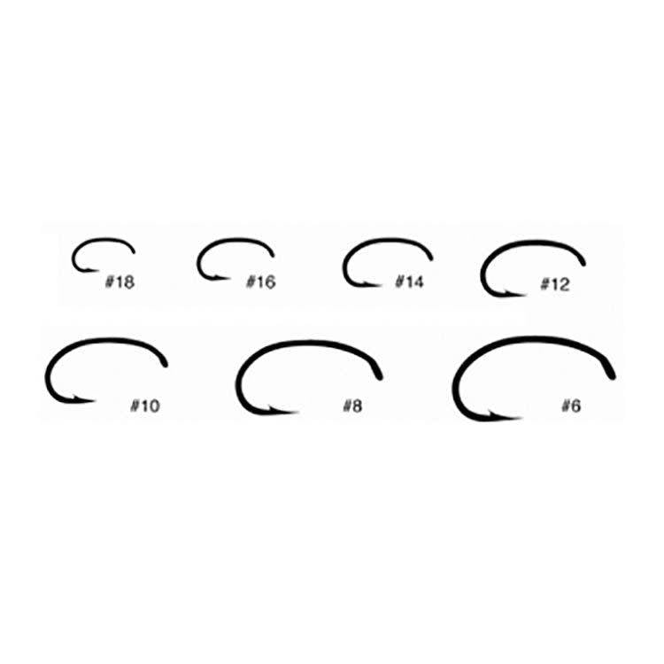 Down eye, 2X short shank, 2X heavy wire, 2X wide gape, bronze; Uses: caddis pupae, shrimp.